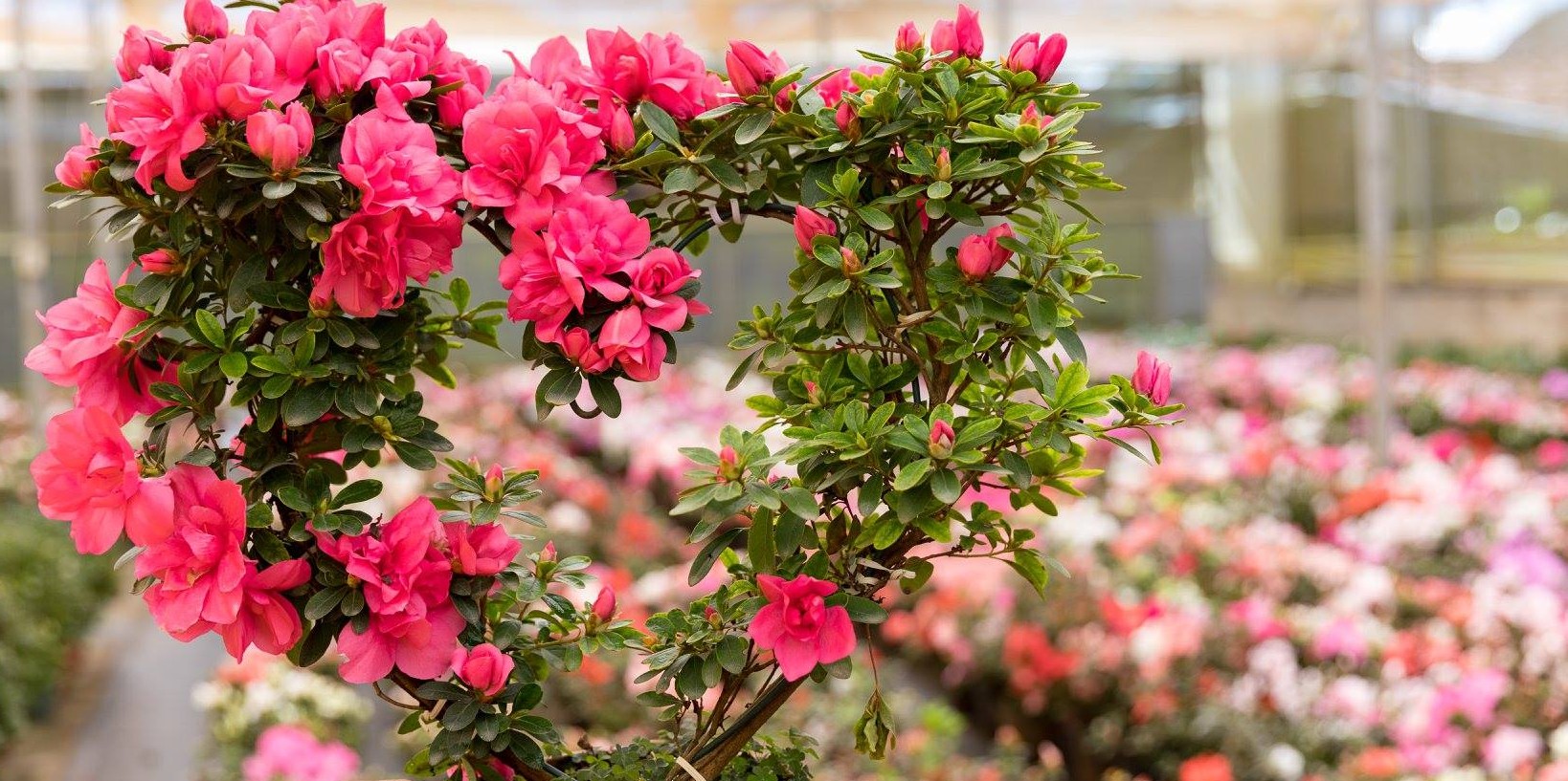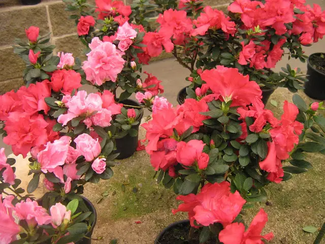 Mediante técnicas adecuadas de control de la temperatura y el fotoperíodo, la azalea puede florecer en el interior en cualquier época del año.