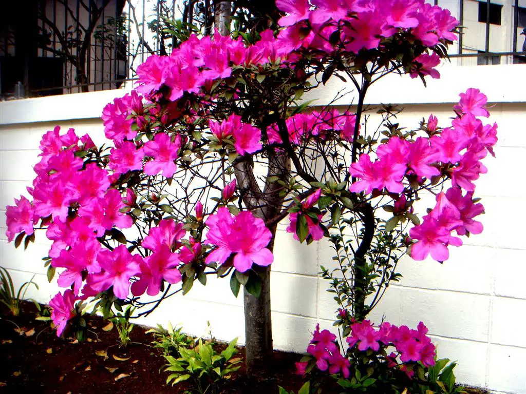 Originaria de China y dotada de follaje verde oscuro, la azalea es una planta perenne, con tamaños que van desde tipos arbustivos, capaces de formar cercas vivas, hasta cultivares de tamaños más pequeños, incluso la versión bonsai.