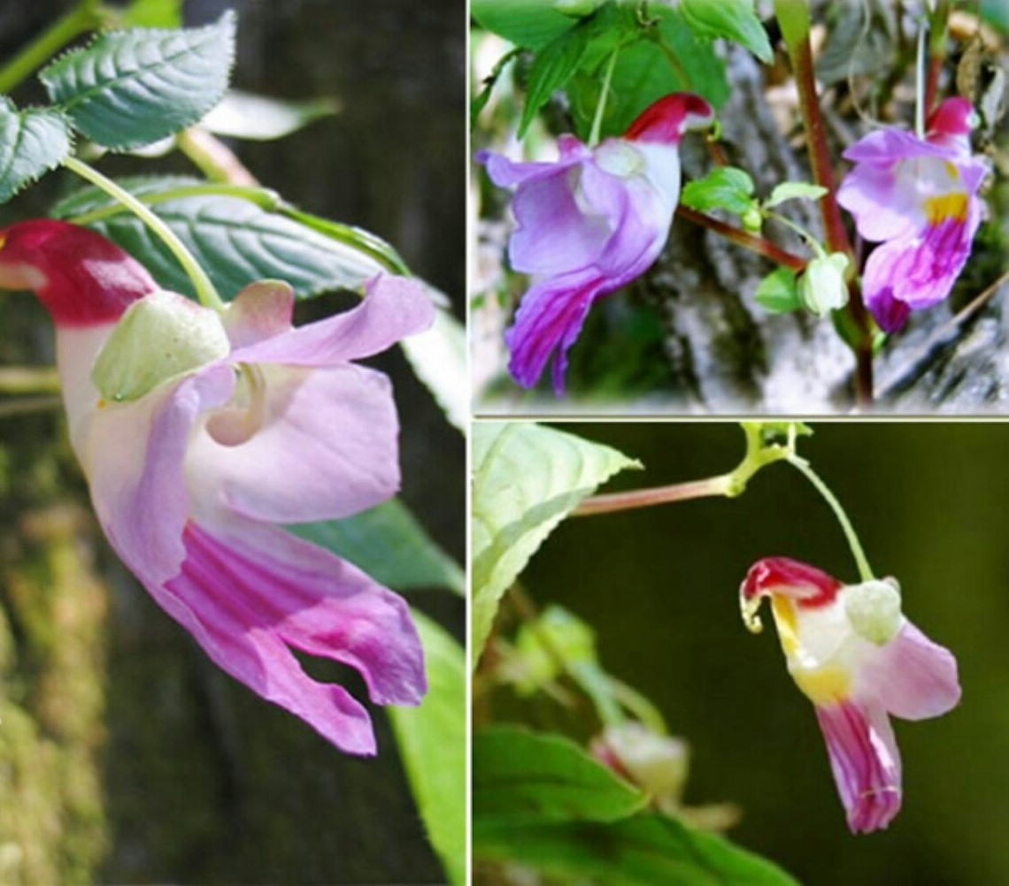 Su nombre científico es Impatiens psittacina y su forma es muy similar a la de un loro cuando está volando, con uno de los pétalos sirviendo de plataforma para los insectos que llegan al interior del mismo y recolectan polen y granos.