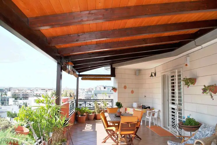 Entre los diversos materiales con los que se fabrican las cubiertas de terrazas, uno de los favoritos es la madera. Resistente al peso de la nieve y el hielo, aísla tanto del frío como del calor y con los tratamientos ignífugos se prestan perfectamente a las cubiertas. Su elegancia es indudable, las vigas trabajadas o simples, crean ambientes cálidos y agradables. No requieren cuidados especiales y resisten el desgaste del tiempo durante mucho tiempo. Las azoteas de maderase pueden terminar con vidrio, hierro y acero, así como con otros materiales de nuestro gusto, combinan muy bien y son muy versátiles tanto en estilo moderno como clásico o folk. La madera es un material completamente natural y se puede reciclar, si decides cambiar cobertizos y techos, entonces no se desperdicia nada, pero todo se reutiliza.