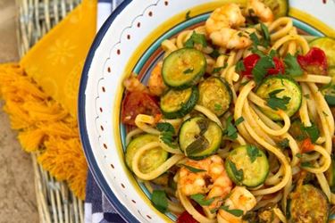 Cómo cocinar calabacín se aprende casi desde niño. Nuestras madres y abuelas nos han acostumbrado a platos a base de esta sabrosa verdura. Hervidas en agua con sal o al vapor, aderezadas con un chorrito de aceite de oliva virgen extra, conservan su valor diurético y depurativo. Además, son bajos en calorías y por lo tanto se asocian fácilmente con otros alimentos, incluso en dietas restrictivas. Mezclado con huevos crea espléndidas tortillas, cuando se mezcla se convierte en un excelente panqueque. Sus flores también son muy exquisitas y se utilizan sobre todo en risottos. Para condimentar la pasta con calabacín, puedes darte un capricho con inventos personales, asociándolos con alimentos para crear salsas siempre nuevas. Un ejemplo son los espaguetis con calabacín y camarones.
