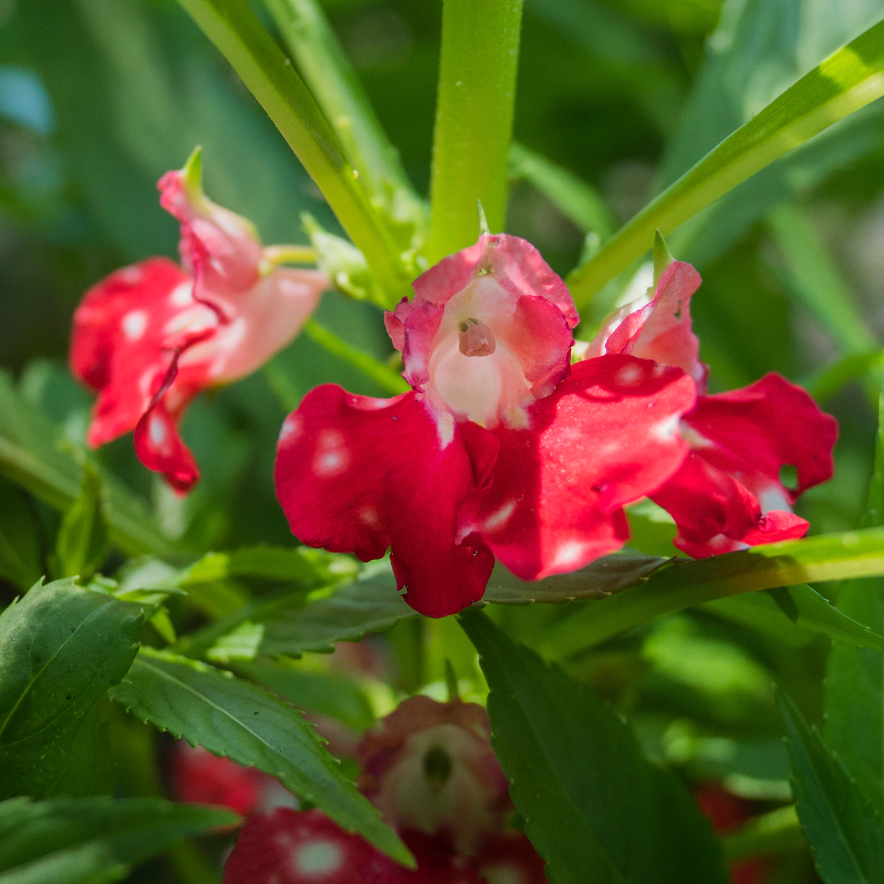 Balsamine Impatiens es una hierba asiática de la familia de las balsaminas. La especie tiene hojas lanceoladas y dentadas, flores rojas, rosadas, blancas o abigarradas, a veces plegadas, y frutos capsulares explosivos (elaterium).
