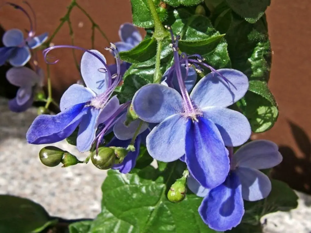 Cuando tienen flores azules y la ligereza de la planta florecen, se exponen casi anualmente, y en climas más cálidos, así como en época estival siempre permanecen en flor.