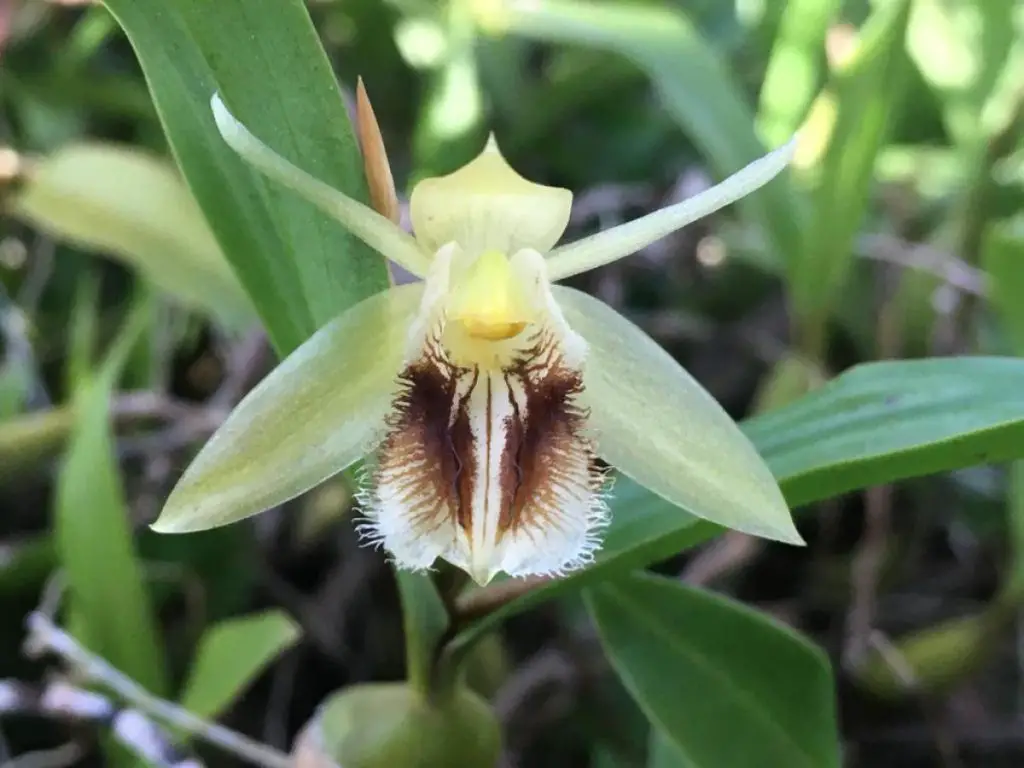 Una planta más rústica, la Coelogyne fimbriata le gusta un clima cálido y húmedo, produce flores amarillas con dos pétalos delgados similares a «antenas» (llamados «sépalos» por los botánicos) y un Pétalo de color marrón difuso que se asemeja a un gran lenguaje, el «labelo», una estructura especial cuya función principal es atraer al polinizador. Su perfume es suave y suele pasar desapercibido.