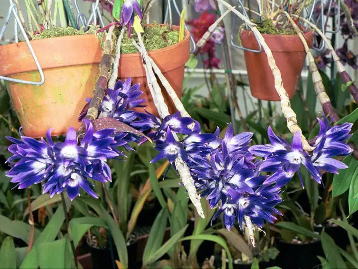 Dependiendo de la etapa de desarrollo de los botones florales, así como de las condiciones climáticas y la intensidad de la luz proporcionada, el color de los pétalos y sépalos de esta orquídea puede variar de lila a púrpura, culminando en un hermoso y raro tono azulado.