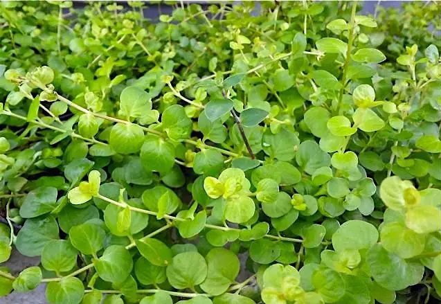 Es una planta rastrera, muy ramificada y compacta, que tiende a crecer más en ancho que en altura. Su principal atractivo son las hojas, que cuando se plantan en arriates forman una hermosa alfombra verde.