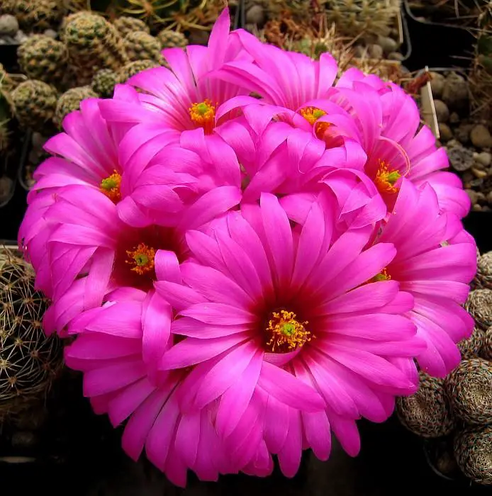 Este cactus es una de las especies más populares entre los coleccionistas. Originaria de México, se caracteriza por tener tallos densamente agrupados. Los tallos son cilíndricos a globosos y forman un conjunto de “bolas” muy elegante.