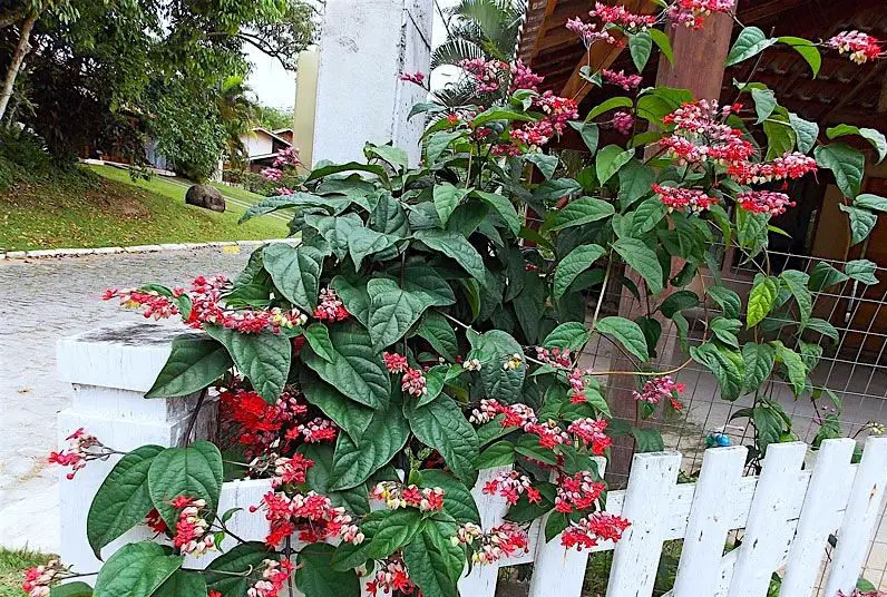 Inflorescencias terminales con numerosas flores rojas y cálices persistentes, que se tornan de color rojo claro con la edad. Aparecen durante la primavera-verano y son visitados con frecuencia por colibríes y mariposas.