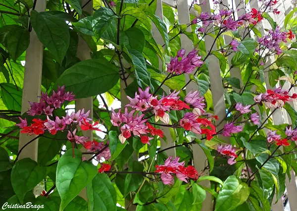 Es un híbrido resultante del cruce de Clerodendron splendens con Clerodendron thonsonae.