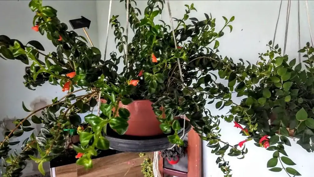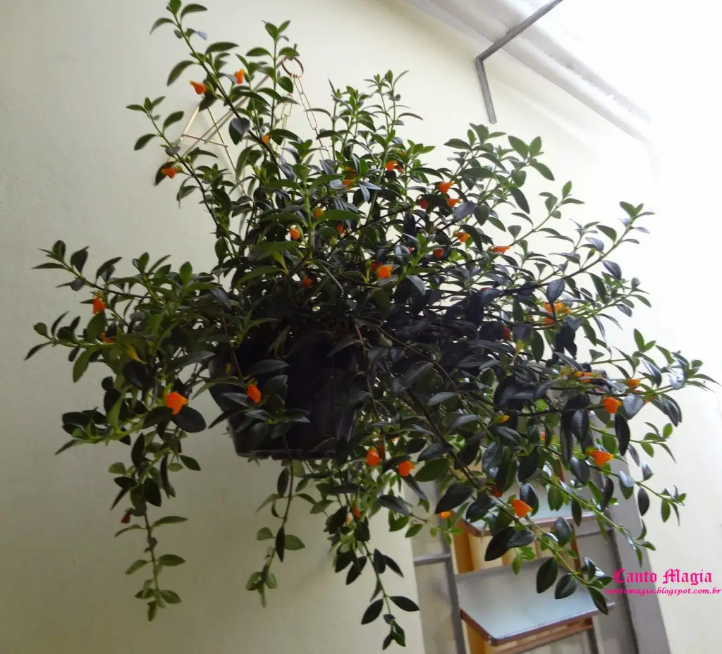 Es una planta con ramas colgantes de hojas de color verde oscuro y hermosas flores anaranjadas que se asemejan a los peces de acuario. Esta hermosa especie es originaria de los bosques tropicales y de Brasil.