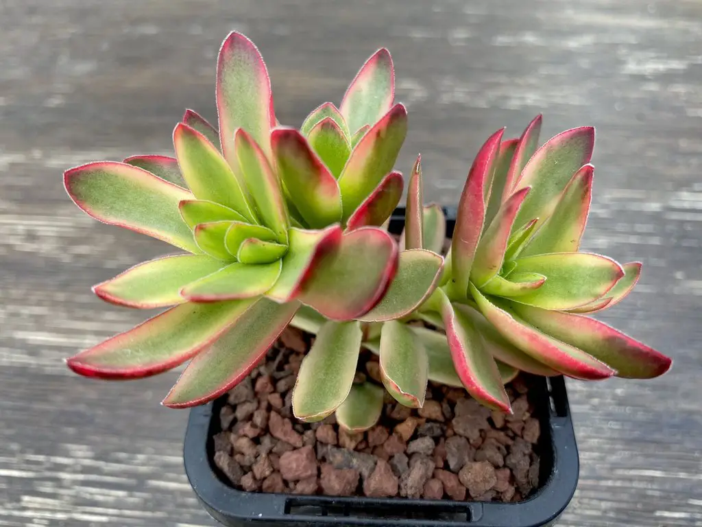 Crecen bien al sol o semisombra, pero el sol directo solo se recomienda durante una pequeña parte del día. Si notas que tu suculenta adquiere un color más verde y el espacio entre las hojas se vuelve menos compacto, es señal de que necesitas aumentar tu exposición a la luz.