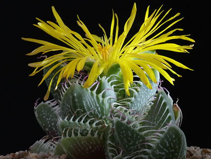 La especie Faucaria tigrina es una planta diferente por su apariencia, algo inusual, pero principalmente porque florece en noviembre.