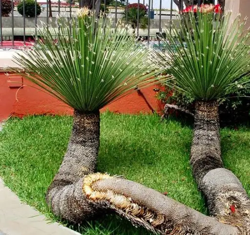 Las hojas secas no caen y forman una falda. Estas hojas se pueden cortar cerca del tronco.