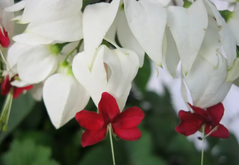 Las flores duran varios meses, aunque la corola roja es de corta duración. A medida que envejecen, las flores cambian de blanco a rosa pálido o lavanda y luego marrones a medida que se secan.