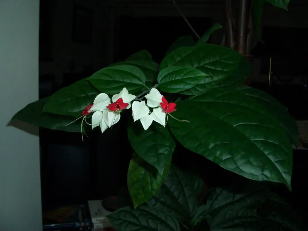 Con abundante luz solar indirecta, el clerodendrum crece voluptuosamente, liberando largos tallos cubiertos de hojas muy decorativas de color verde oscuro.