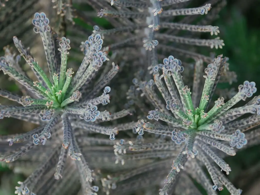 Sin embargo, sus hojas son mucho más estrechas y largas, es una especie diferente en apariencia. Se llama planta de candelabros o planta de candelabros en el extranjero.