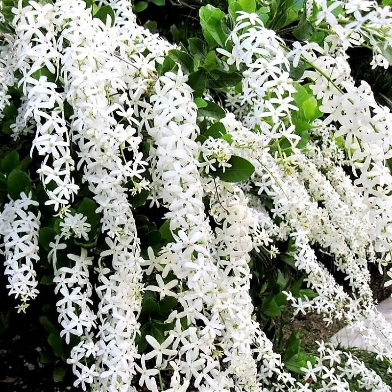 Sus abundantes flores, pequeñas y fragantes, están compuestas por dos estructuras: una con pétalos azules largos y delgados, la otra con pétalos violetas cortos y redondeados, lo que le da un aspecto inconfundible.