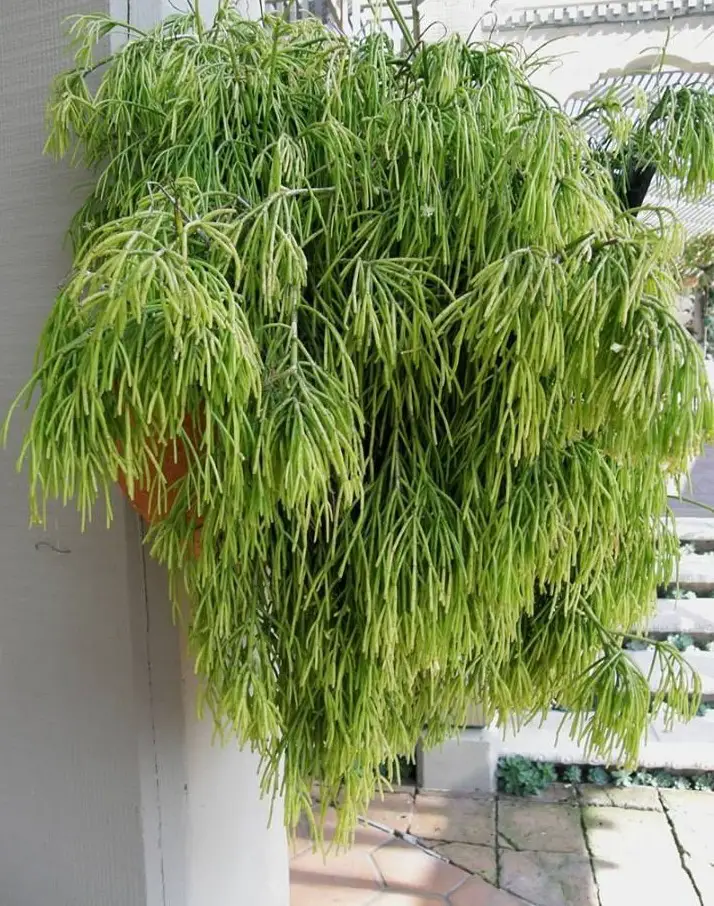 También se le conoce como fideos de cactus y colas de rata. Pertenece a la familia de las Opuntiaceae y su origen es de África y Sri Lanka