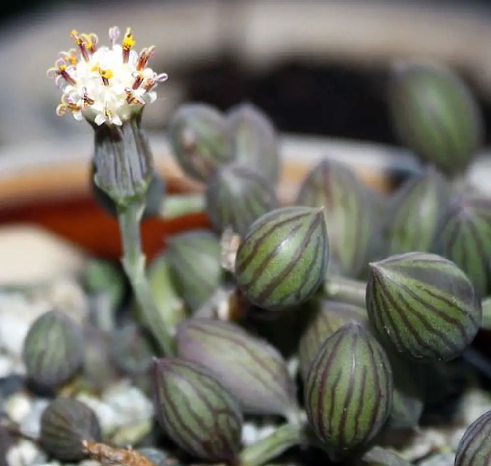 El collar de sandía es de un tipo similar a la Planta del Rosario, por la forma de sus hojas y por eso a veces se le llama “collar de perlas” como Senecio Rowleyanus.