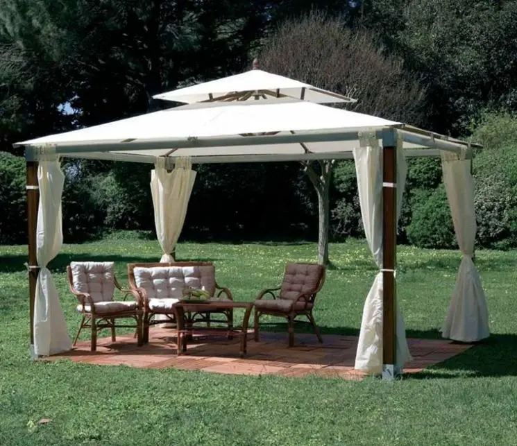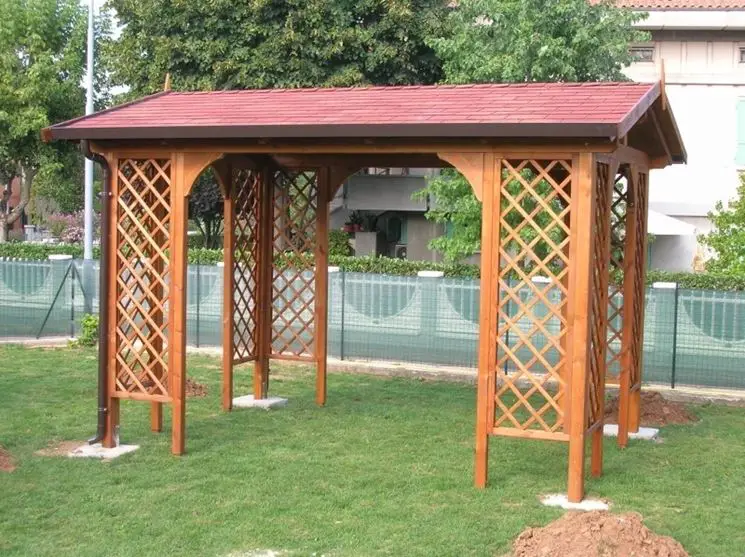 Al preguntarse cómo construir un cenador de madera.hágalo usted mismo, debe considerar la importancia de un proyecto inicial. De hecho, esto se utilizará para establecer la forma, las dimensiones y el esquema de montaje de la glorieta, pero también la cantidad de material necesario. Usando estacas y alambre, delinee cuál será el perímetro. Luego, donde se fijarán los postes de soporte, tendrás que cavar agujeros de 50 cm de profundidad, en los que verterás una capa de grava. En este punto inserte los postes, revisando la rosca con el nivel, y vierta el concreto en el agujero. Es posible que necesite algunos postes de soporte para sostener los postes durante el período de secado del concreto. Ahora puede continuar con la construcción.
