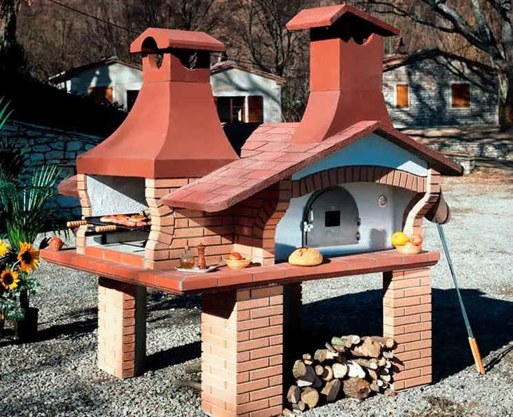 Hay varios modelos de chimeneas de jardín. Normalmente constan de una barbacoa y un horno de leña, de forma artesanal o comprando directamente una chimenea exterior prefabricada (para montar o única) a una empresa especializada. En el caso de los módulos a ensamblar, la chimenea está compuesta por la base con un compartimento para la leña y la chimenea real (incluyendo hogar, chimenea, chimenea y techo). En definitiva, su apariencia se asemeja a la de una pequeña casa con chimenea. Además, la chimenea se puede completar con accesorios (por ejemplo, superficies de trabajo y encimeras) para que sea más cómodo de usar y mantener. Además, se puede equipar con puertas batientes o correderas para cerrar la boca del hogar y mantener el calor en el
