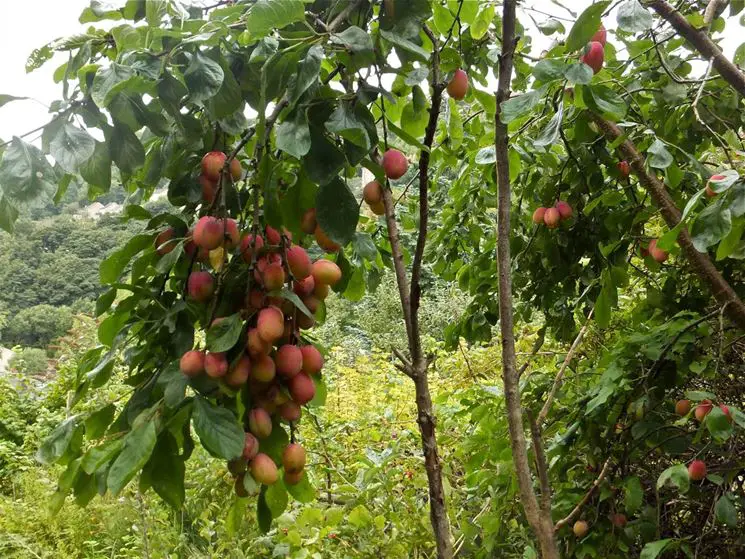 Los injertos más populares del ciruelo son la semilla myrobalan y el jaspi. Esta última variedad produce muchos chupones que deben eliminarse con frecuencia. Si se quiere plantar numerosas ciruelas para aprovechar sus frutos, es recomendable darles forma de palmeta: de esta forma la cosecha será más inmediata. La poda se realiza a finales de febrero, antes del reinicio vegetativo. Elimina todas las ramas desprovistas de vitalidad y acorta las que sobresalen de la forma principal. El riego de las plantas se vuelve imprescindible cuando, durante la floración, las lluvias son escasas. En este caso es necesario regar los arbustos para evitar que se inhiba parcial o totalmente el desarrollo del fruto.