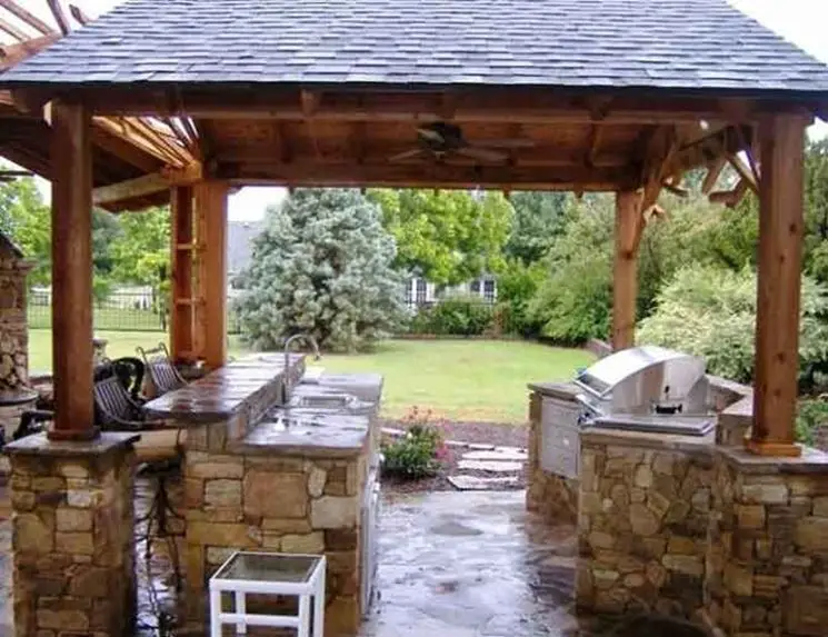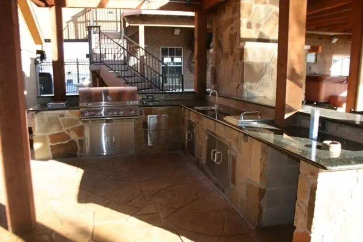Cuando decida crear una cocina al aire libre en su jardín, debe seguir unos sencillos pasos. Primero se debe construir la estructura portante: esta será construida en mampostería, y tendrá un tamaño de 140 x 50 centímetros. De esta forma, podrás disponer de márgenes de espacio útiles para cualquier eventualidad. La altura, en cambio, conviene unificar preferentemente (la medida ideal es de unos 80 centímetros). En cuanto a la encimera, una media con 4 fuegos tiene un tamaño de unos 50 cm x 50. También en este caso, habrá suficiente espacio en los márgenes laterales útil para colocar utensilios y más. Otras dimensiones estándar son las del fregadero, que medirán aproximadamente 120 x 40 centímetros (este formato también incluirá la tapa lateral).