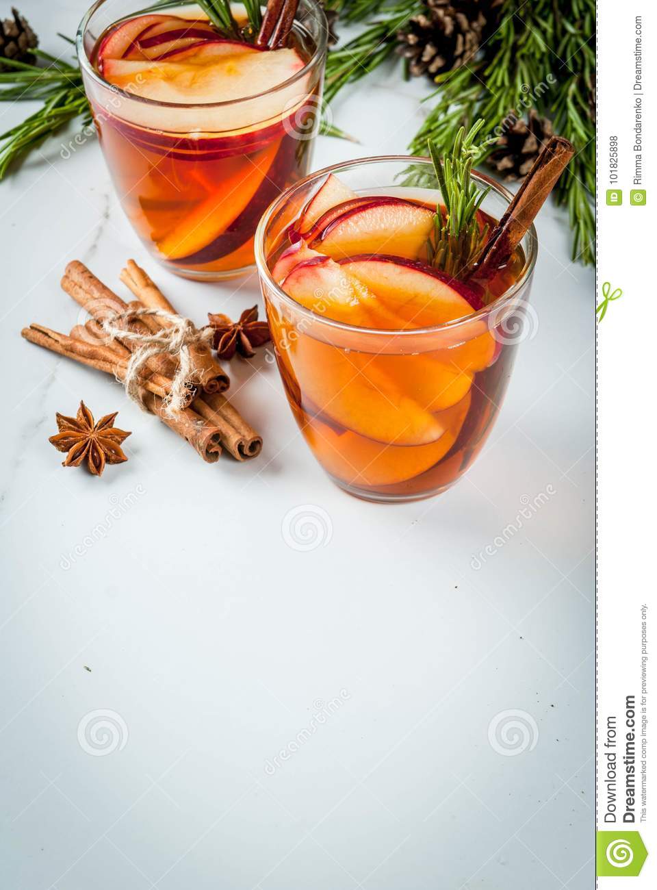 Cócteles de vacaciones con manzanas y hierbas aromáticas