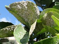 - Melaza : las plantas liberan una melaza pegajosa y esto puede contribuir al crecimiento de moho en las plantas. Además, esto es un obstáculo para la fotosíntesis de clorofila , que va acompañada del desarrollo de criptogamas y daño del producto. Las hojas aparecen manchadas, reclinadas y pierden vigor.