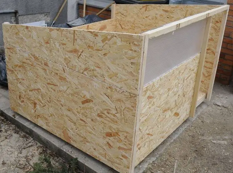 Otra forma bastante sencilla es utilizar cuentas. Incluso los abalorios son un material preacabado, son tiras de unos diez cm con uniones machihembradas que se pueden montar fácilmente. Con este método de montaje no hay huecos ni corrientes de aire. Sin embargo, es necesario proporcionar un marco sobre el que fijarlos para que no se doblen. Para ello, utiliza tiras de 10 cm de ancho y dos de grosor, necesitas dos por cada parte de la perrera. Deben colocarse perpendiculares a las cuentas. Las perlas se atornillan a las tiras formando las cinco partes necesarias y luego procedemos a fijarlas entre sí mediante tornillos de 5,5 cm. Veamos cómo construir una perrera al aire libre: necesitas aislar la perrera y proteger al perro del frío, puedes insertar una lámina de poliestireno entre las dos tiras. A continuación, se fija una lámina de madera contrachapada más fina en el interior, para obtener una doble pared. Puede hacer el aislamiento en todas las paredes y en la parte inferior. Las patas pueden estar formadas por cuatro cubos con un lado de 8 cm, para distanciarlo adecuadamente del suelo.