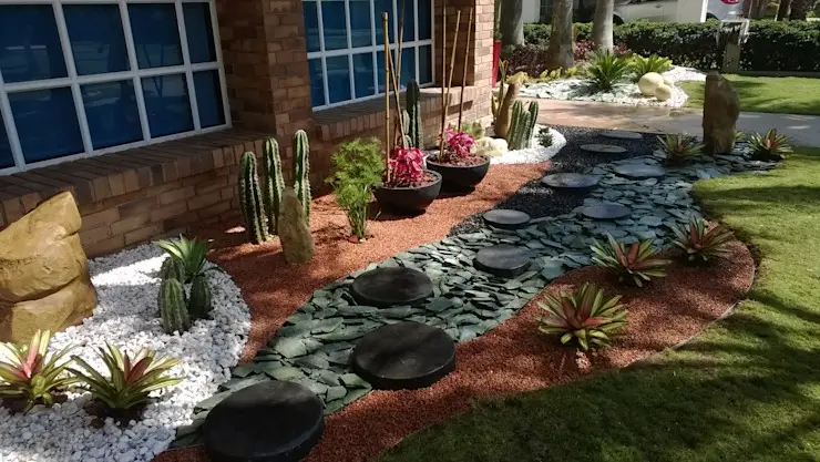 Transformar la más aburrida de las entradas en una sensacional pero de bajo mantenimiento con los tonos favoritos de esta temporada: verde lima, púrpura, negro y rosa impactante. Muchos jardines delanteros se utilizan para el espacio de estacionamiento adicional, pero antes de cambiar los sombríos y abandonados bordes por pavimento de bloques o grava, ¿por qué no tratar de reinventarlos en su lugar? Un simple y elegante macizo de flores junto con unas cuantas macetas llamativas no sólo tendrá un aspecto fantástico, sino que también ayudará a mejorar el drenaje de agua en comparación con un espacio completamente pavimentado.