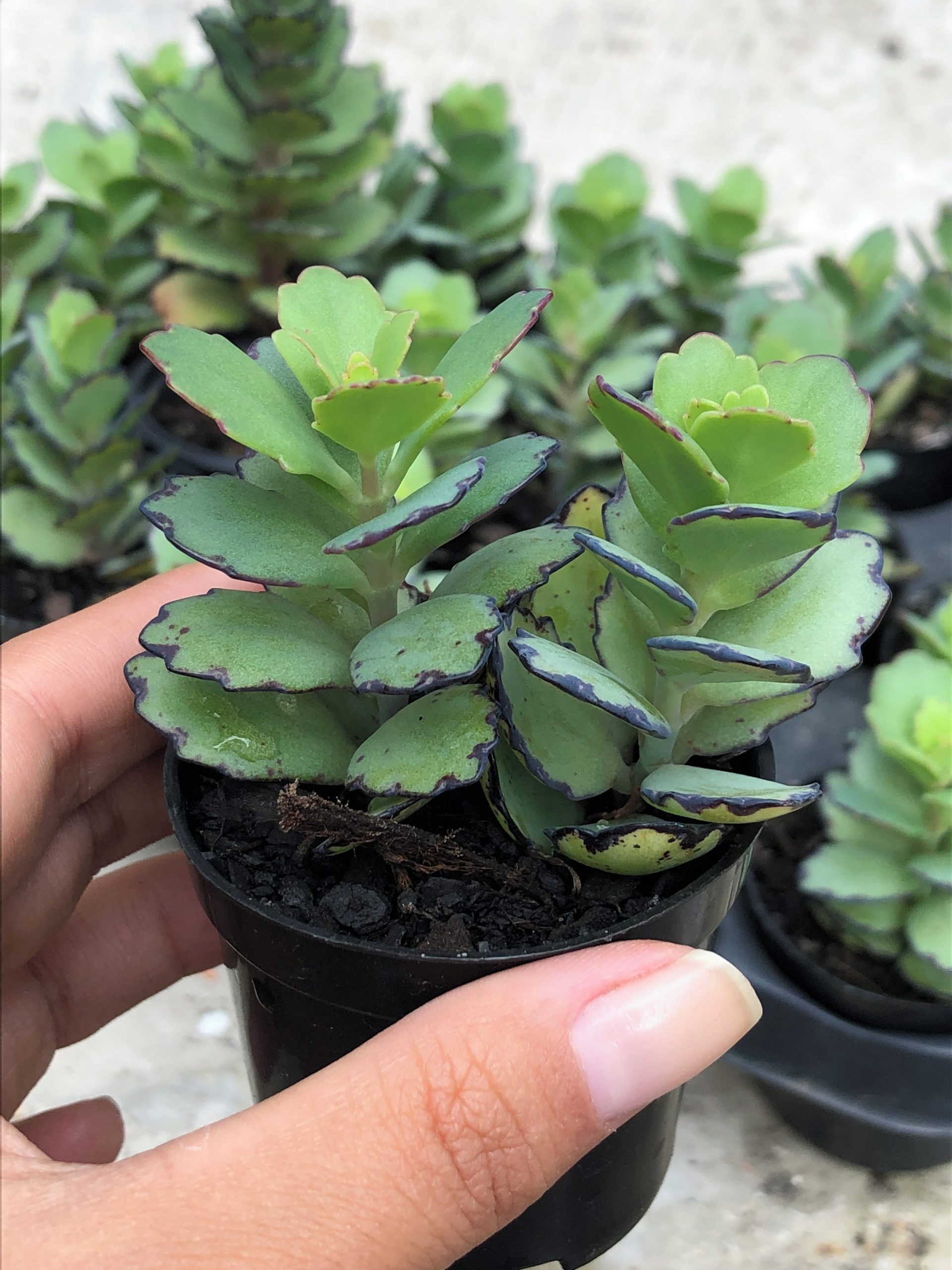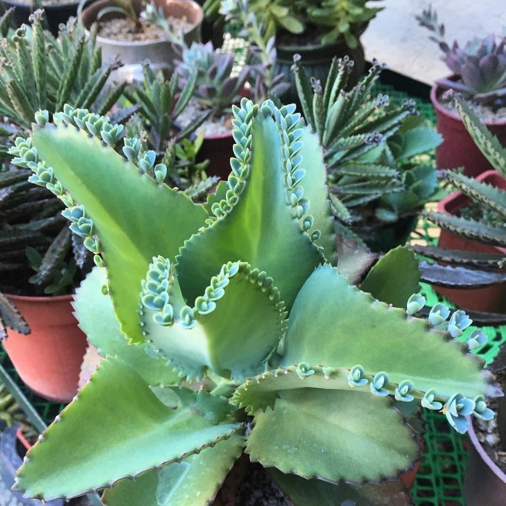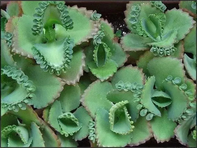 Sus bordes son dentados, como en la mayoría de las plantas del género. En estos puntos fronterizos pueden aparecer plántulas adventicias, así como en sus parientes, pero, a diferencia de estas, las plántulas solo aparecen si las hojas caen al suelo, y casi nunca mientras aún están en la planta.