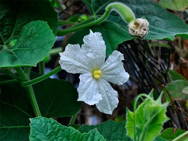 Sus flores tienen colores blancos, y tenemos la hembra y el macho en la misma planta. Las flores femeninas tienen un pequeño fruto en la base de la flor; este es en realidad el huevo de la planta que, después de ser polinizado, se convertirá en una nueva fruta.