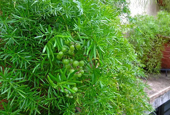 Diferentes variedades de espárragos, la plumosus es sin duda la más delicada con sus finísimas ramas. No crecerá tanto como algunos de sus congéneres, pero su apariencia de helecho siempre es agradable.