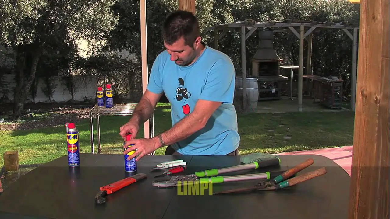 Grandes aparatos: Al igual que las herramientas de mano, también las grandes (palas, rastrillos, azadones…) requieren una limpieza con agua y jabón, ayudada por un cepillo o un estropajo de alambre para eliminar los residuos acumulados. Todos los utensilios funcionan mejor si están limados y se recomienda la aplicación de un poco de spray WD-40 en todos los elementos metálicos para evitar la oxidación. Termina aplicando un poco de aceite de linaza en los mangos de madera, que los protege del uso.