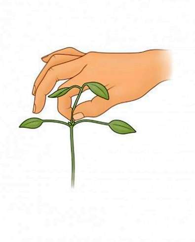 Poda: El primer corte serio debe realizarse cuando la planta tenga solo 30 cm de altura. En ese momento, cambie su tamaño a 15 cm y deje que se formen nuevas hojas y tallos. A medida que crece, «pellizque» el nuevo crecimiento durante el verano (vea la imagen a continuación) para forzar la formación de nuevas ramas, a medida que la fruta del aguacate crece en las nuevas ramas.