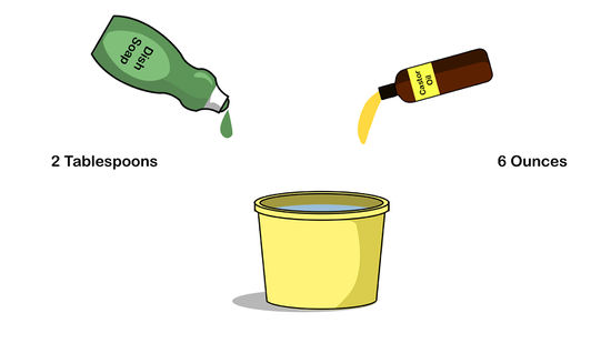 Mezcla tres cucharadas de aceite de ricino y una cucharada de detergente para platos en un pulverizador de un galón. Añade un galón de agua. Rocíe la mezcla en el suelo a lo largo de los túneles y especialmente donde vea agujeros de entrada y salida. También puedes cambiar esta receta y usar Aceite de Murphy en lugar de detergente para platos. Se dice que añadir una cucharadita de pimienta de cayena aumenta la eficiencia.