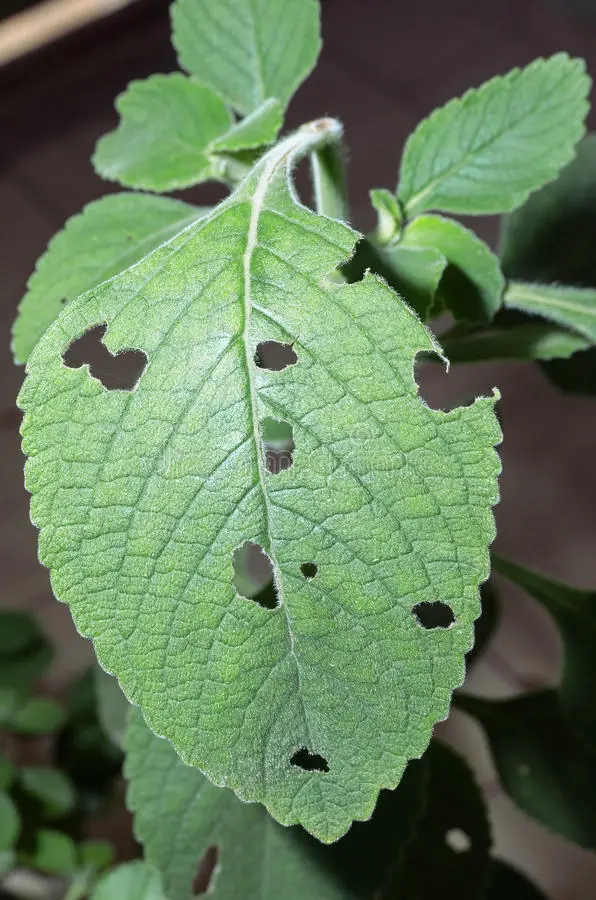 Estos insectos parecen manchas porque son casi estáticos. Los áfidos, por otro lado, tienden a estar en grandes cantidades en los botones florales, en las hojas nuevas y en los tallos más nuevos y suaves. La presencia de orugas y hormigas se evidencia por hojas comidas o con partes cortadas.