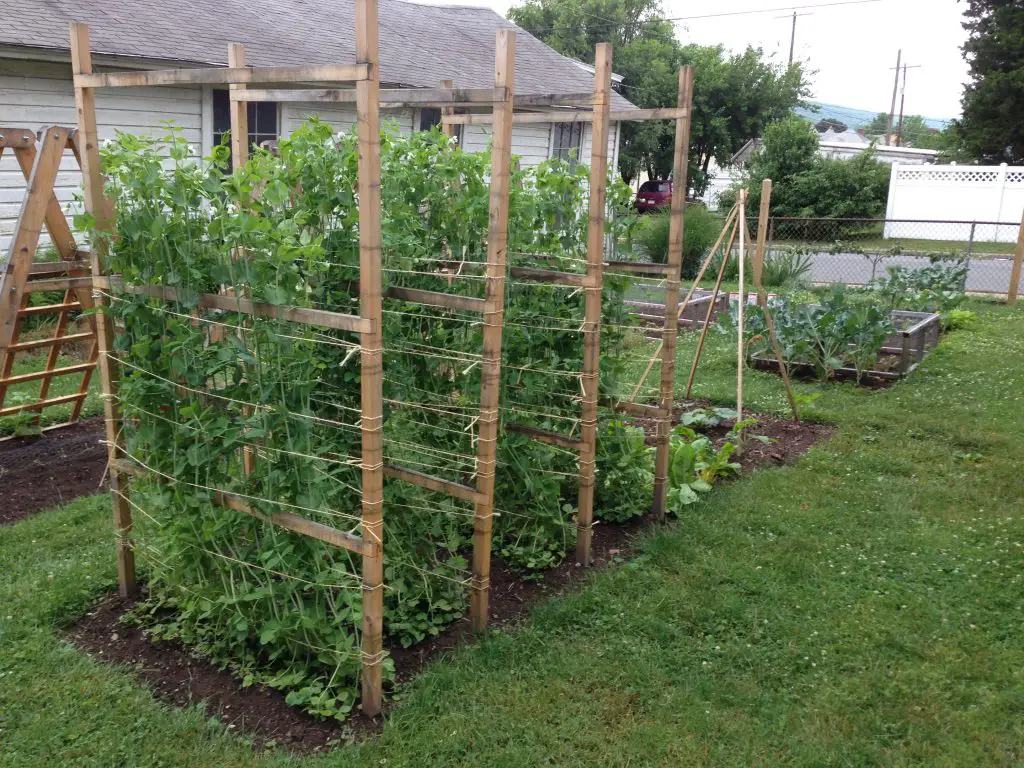 Las plantas altas necesitan apoyos para crecer verticalmente. Estos soportes pueden ser vallas de alambre o malla plástica, estacas delgadas, cerchas, otras plantas altas (por ejemplo, el maíz), etc. Es importante que los soportes sean relativamente delgados, ya que el guisante trepa por sus zarcillos, que suelen ser ramificados y relativamente cortos, y se aferran al soporte o a otras plantas.