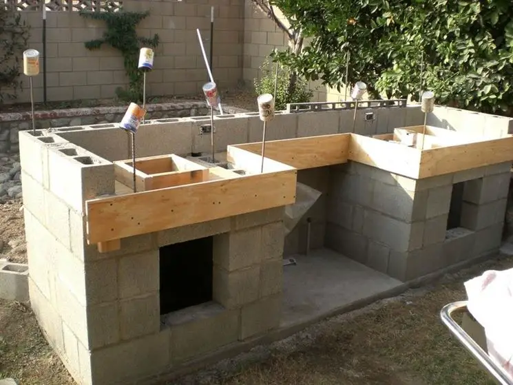 Aunque la oferta de barbacoas de mampostería prefabricadas es muy amplia, es posible producir una usted mismo, todo lo que necesita es un buen conocimiento del bricolaje. La parte más importante es sin duda el hogar, que debe estar revestido con material refractario, de lo contrario existe el riesgo de que después de un pequeño número de incendios, el hormigón y los ladrillos se dañen notablemente, haciendo que toda la barbacoa quede completamente inutilizable. El resto de la barbacoa sirve solo como soporte, por lo que se puede construir con ladrillos clásicos, pero el hormigón a utilizar debe ser todo resistente al calor. Comenzamos preparando una base, que apoyará toda la estructura; luego se construyen las paredes laterales, sobre las cuales reposarán las placas de material refractario para el hogar; es aconsejable producir paredes fuertes y resistentes,