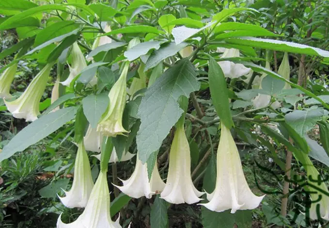 Datura stramonium – Es una planta muy atractiva visiblemente por tener flores blancas en forma de trompetas que cambian de color a púrpura, se confunden mucho con los lirios.
