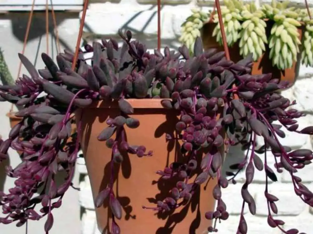 Conocido como collar de rubíes, esta hermosa suculenta es resistente y fácil de cultivar. Se puede cultivar en sombra parcial o pleno sol.