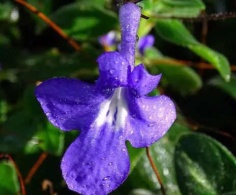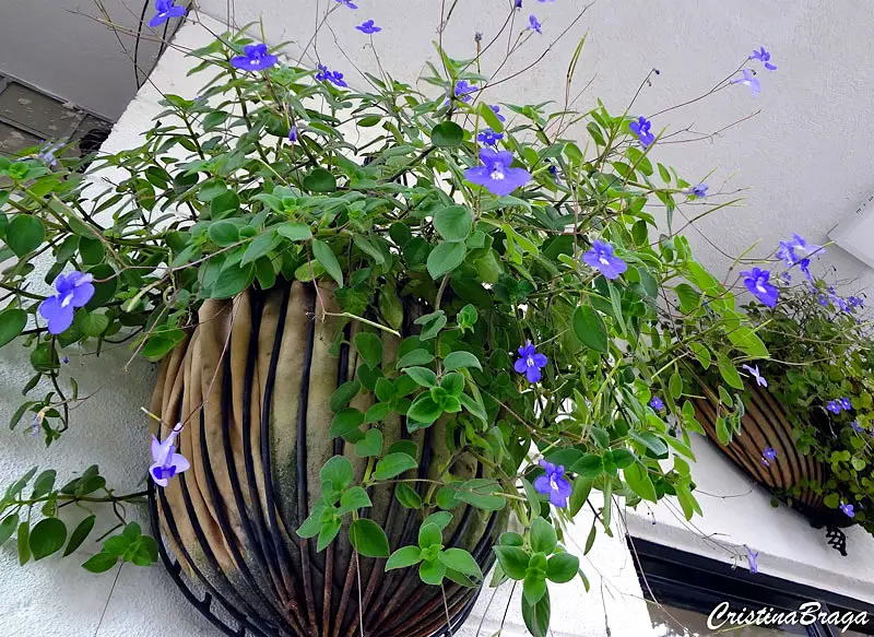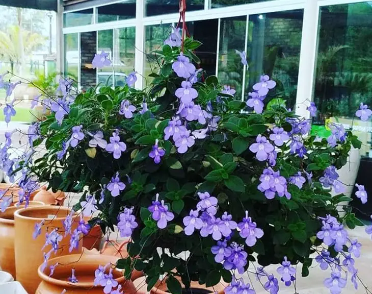 El colgante Violeta – Streptocarpus saxorum es una herbácea, pertenece a la familia Gesneriaceae, originaria de Kenia y Tanzania, perenne, suculenta, de rápido crecimiento, de hasta 30 cm de longitud y muy ornamental.