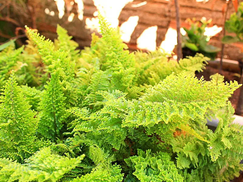 helechos prefieren la luz indirecta, nunca expuestos a la luz solar directa. Siempre media sombra. Si no reciben suficiente luz, se atrofiarán.