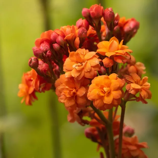 La especie Kalanchoe blossfeldiana es resistente y fácil de cuidar. De la familia de los crasuláceos, también se le llama calandiva y tiene hojas anchas, gruesas y de color verde oscuro, considerándose una suculenta.