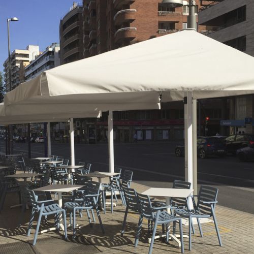 - APERTURA Y CIERRE CON MANIVELA: Parasol octogonal de medidas considerables que se abre y cierra fácilmente mediante la manivela que tiene en el propio mástil