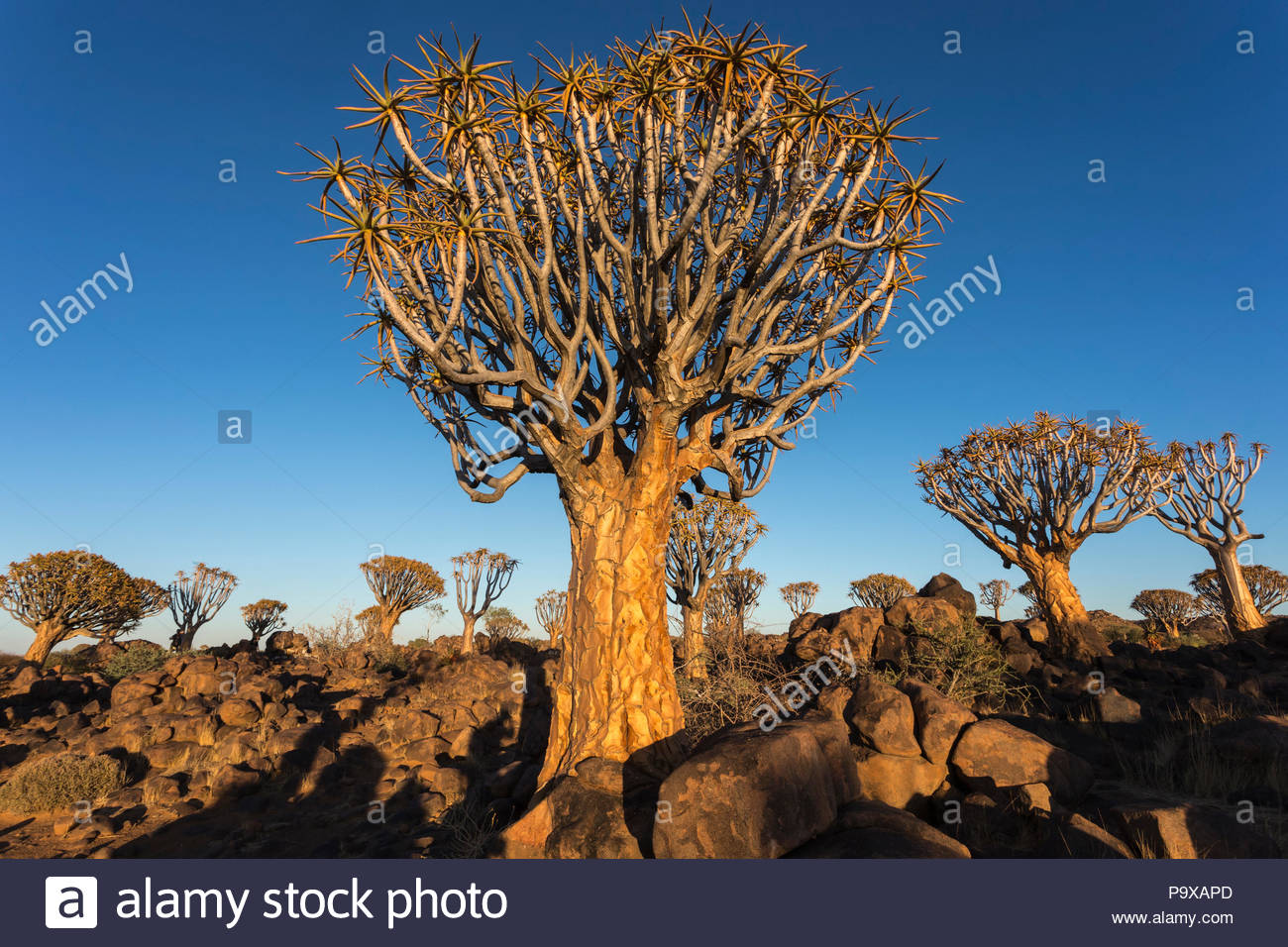 Aloidendron dichotomum , el árbol de carcaj es una planta suculenta, leñosa y suculenta que pertenece a la familia de las Asphodelaceae. Es nativo de Sudáfrica y Namibia. El Aloidendron dichotomum está adaptado al clima árido: sin embargo, estos árboles suculentos, que solían ser asombrosos bosques dispersos en la sabana seca, ahora están disminuyendo debido al calentamiento global. La adaptación al clima árido les permite descansar durante el tiempo de calor, pero lamentablemente lo que antes era una ventaja está desapareciendo: cuando los períodos de calor duran más tiempo, los árboles de carcaj mueren.