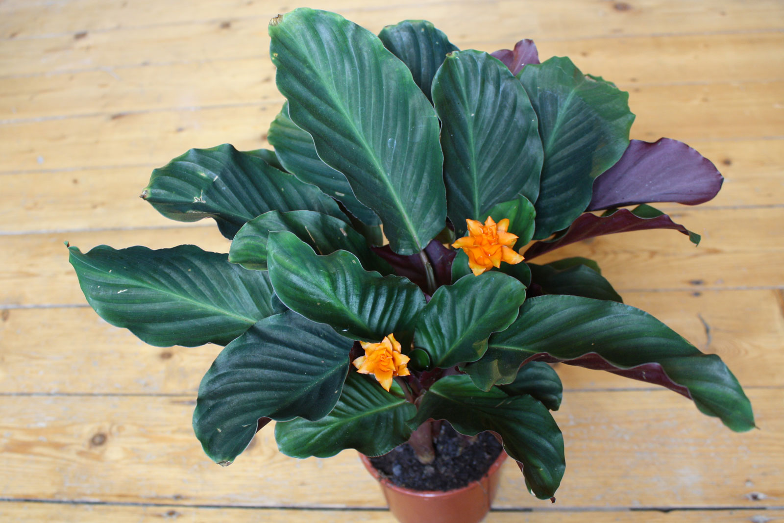- Calathea crocata interesante por sus brácteas anaranjadas