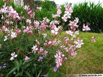 Gaura lindheimeriest una planta cada vez más presente en nuestros jardines. Su ventaja es un prolongado período de floración desde la primavera hasta el otoño, sin detenerse hasta las primeras heladas. Su floración en racimos de flores simples y aleteadas hace que sea una planta de aspecto muy natural que se adapta muy bien a los jardines modernos. Sus tallos altos y flexibles se balancean con la más mínima brisa, acentuando la impresión de ligereza y elegancia.
