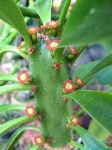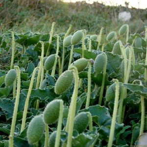 Esta Papilionácea (hoy en día más bien Fabácea) atrae a muchos insectos polinizadores y produce vainas largas, planas y aterciopeladas que cierran las semillas.